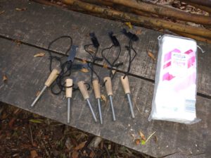 - Carbonstaal messen (om een speer of stok voor de marshmallows mee te maken);
